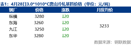 截止2026年4月28日17:30,天津地区1.0mm冷轧板卷市场行情报价3660元/吨,价格较上一交易日持稳;1.0mm镀锌板卷市场行情报价4100元/吨,价格较上一交易日持稳。